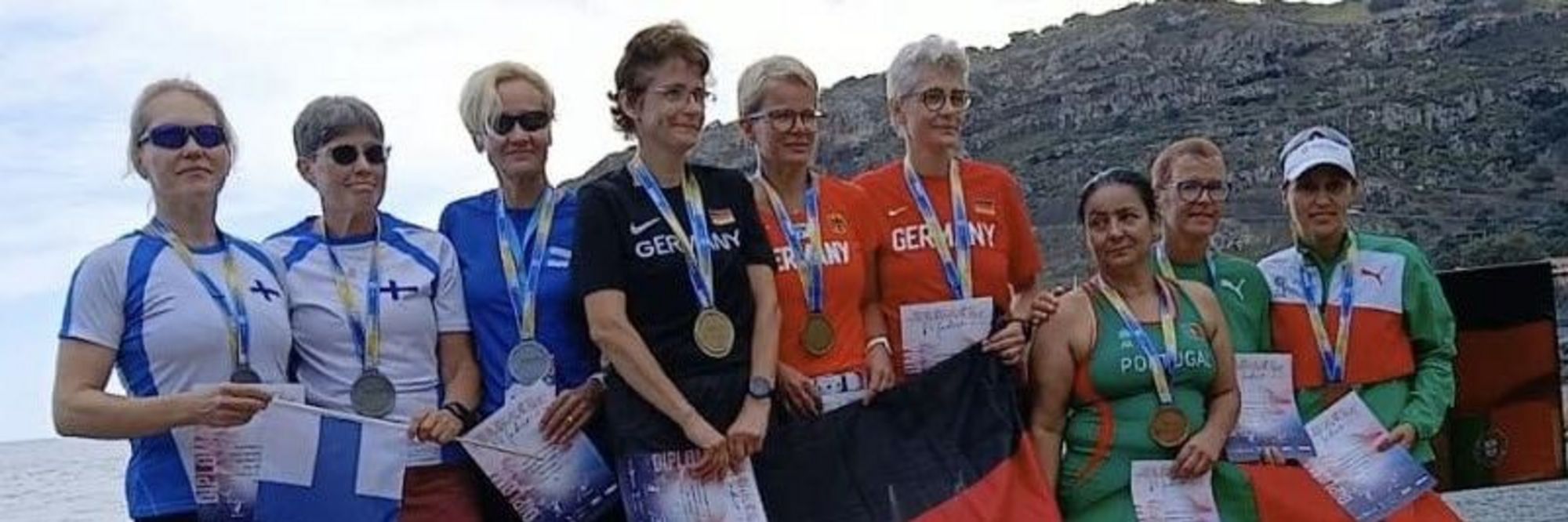 Im Hauptstadion der Masters-EM auf Madeira, dem Ribera Brava gab es am 5. Wettkampftag erneut sächsisches Edelmetall. Dr. Birgit Burzlaff von den Sportfreunden Neukieritzsch 21 konnte sogar Gold und Silber entgegennehmen. Sie gewann den Weitsprung in der W60 mit 4,55 m und über die 100 m lief sie mit 14,42 s auf den Silberrang. Dr. Birgit Burzlaff hatte für zwei Disziplinen gemeldet und hat sie mit Gold und Silber bravourös gemeistert. Unser ältester sächsischer EM-Teilnehmer, Siegfried Richter von der SSV Fortschritt Lichtenstein, gewann die 100 m in der M90 mit großem Kampfgeist (s. Foto-Startnummer 3310)) überzeugend in 20,12 s und Gold war der Lohn dafür. Siegfried Richter hat nun noch mehrere Medaillenchancen und wir wünschen ihm dafür viel Erfolg. Bianca Schenker, Brit Schröter (beide LG Vogtland) und Jana Keller (Sportfreunde Neukieritzsch 21) erkämpften eine weitere Goldmedaille für Sachsen im 10 km Straßengehen. Für Bianca Schenker war es damit der 2. Master-EM-Titel auf Madeira und für ihre Zwillingsschwester Brit Schtröter nach Silber nun der EM-Titel. Unseren fünf Medaillengewinnern herzlichen Glückwunsch und ein Dankeschön nach Madeira.