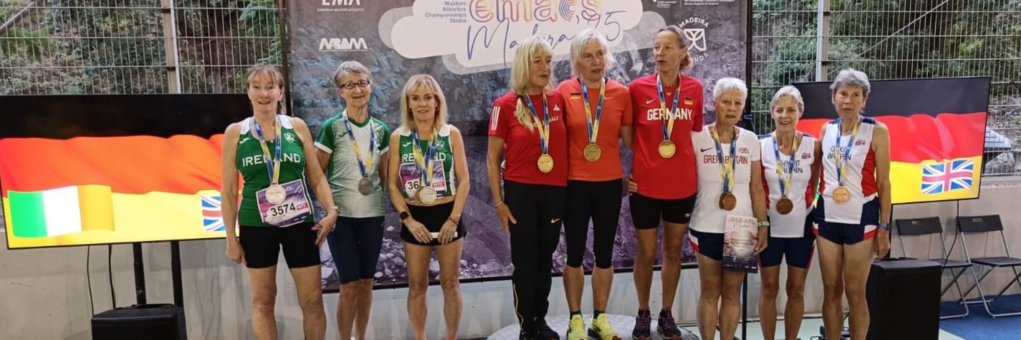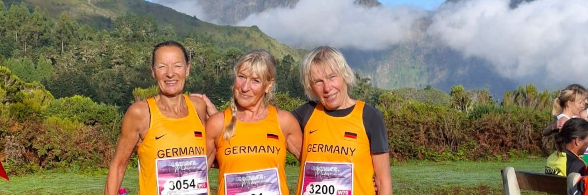 Auf der Hochebene von Chao das Feiteiras auf Madeira fanden die Crossläufe der Masters-EM 2025 statt und unsere Starterinnen von den Sportfreunden Neukieritzsch 21, Ute Lauchstedt und Grit Dorczok, waren mit ihren deutschen AK-Teams sehr erfolgreich am Start. Während ihres Wettkampfes haben sie sicher nicht die wunderschönen Aussichten auf der Hochebene genießen können, freuen sich aber danach über ihre gewonnenen Medaillen und verinnerlichten dann diese traumhafte Umgebung. Ute Lauchstedt gewann in der Teamwertung der W70, gemeinsam mit Margret Goettnauer und Marion Sarasa Mannschaftsgold. In der Einzelwertung erreichte Ute Lauchstedt Platz 4 in einer Zeit von 34,37 min. Grit Dorczok, ebenfalls Sportfreunde Neukieritzsch 21, lief mit ihrem Team (Ulrike Fritz-Wefers und Katja Knospe) in der W55 auf den Silberrang. Ihre Distanz betrug 8 km und Ute Lauchstedt musste 6 km absolvieren. Glückwunsch zu diesen Erfolgen für sie, die Sportfreunde Neukieritzsch 21 und auch für unsere sächsische Leichtathletik.