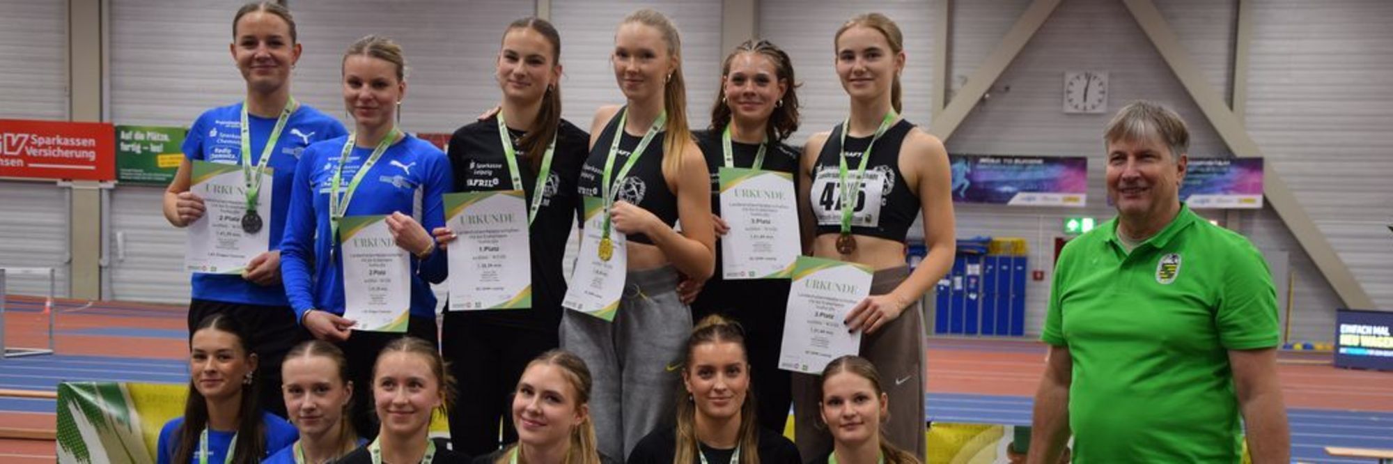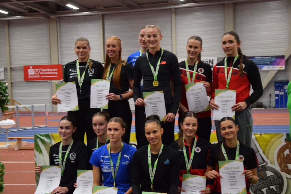 Am 17. und 18. Januar gingen 832 Sportlerinnen und Sportler aus 100 Vereinen bei den Landeshallenmeisterschaften der o.g. Kategorien im Kampf um Titel, Medaillen, Persönliche Bestleistungen und Normerfüllungen an den Start. Im Vorjahr waren es mit 847 TN aus 99 Vereinen annähernd genau so viele Leichtathletinnen und Leichtathleten. Am 17. Januar war die Chemnitzer Leichtathletik-Halle sehr gut gefüllt und die Stimmung bestens. Nur einen Wermutstropfen gab es im 1500 m Lauf der MJ U18. Hier trafen mehrere unglückliche Umstände zusammen: Keine elektronische Zeitnahme und auch keine Handzeitnahme. Im Gespräch mit den 10 Betroffenen wurde Übereinstimmung erzielt, dass es am 18.1. die Möglichkeit geben wird, die 1500 m der MJ U18 zu absolvieren. Dies wurde dann nur von einem Sportler aus Hoyerswerda wahrgenommen, standen doch auch die 800 m an diesem Tag auf dem Plan.