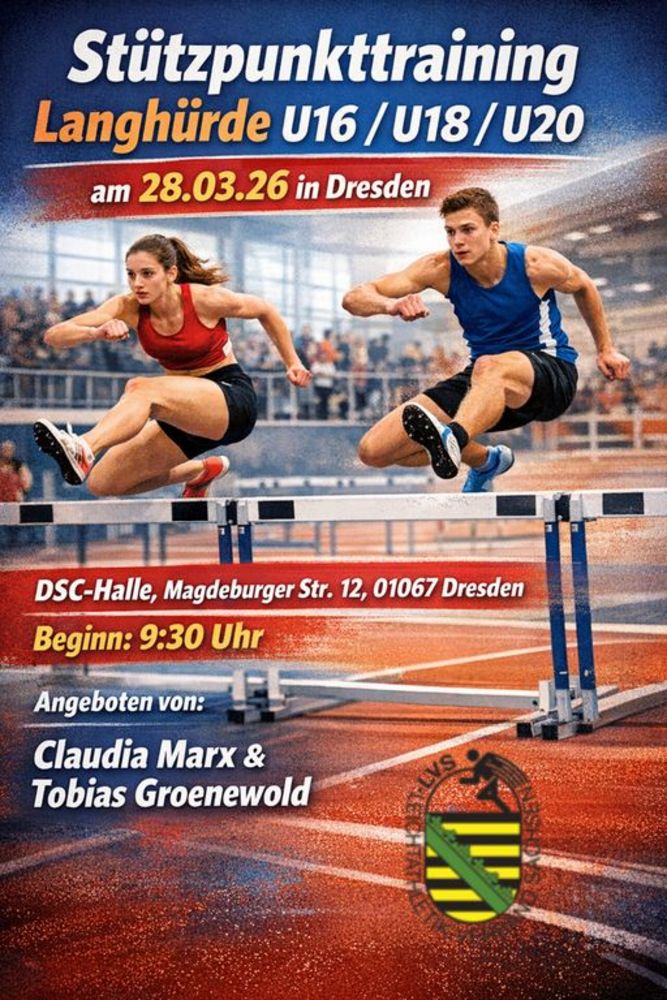die Landesstützpunkttrainer im Langhürdensprint Claudia Marx und Tobias Groenewold möchten gern am 28.03.2026 ein Stützpunkttraining für die Langhürde anbieten. Hierfür möchten wir gern alle ab der U16 einladen, die sich mit Langhürde beschäftigen (wollen). Die Trainer sind herzlich eingeladen mitzukommen und zu hospitieren (Anmeldung über Fortbildungen).