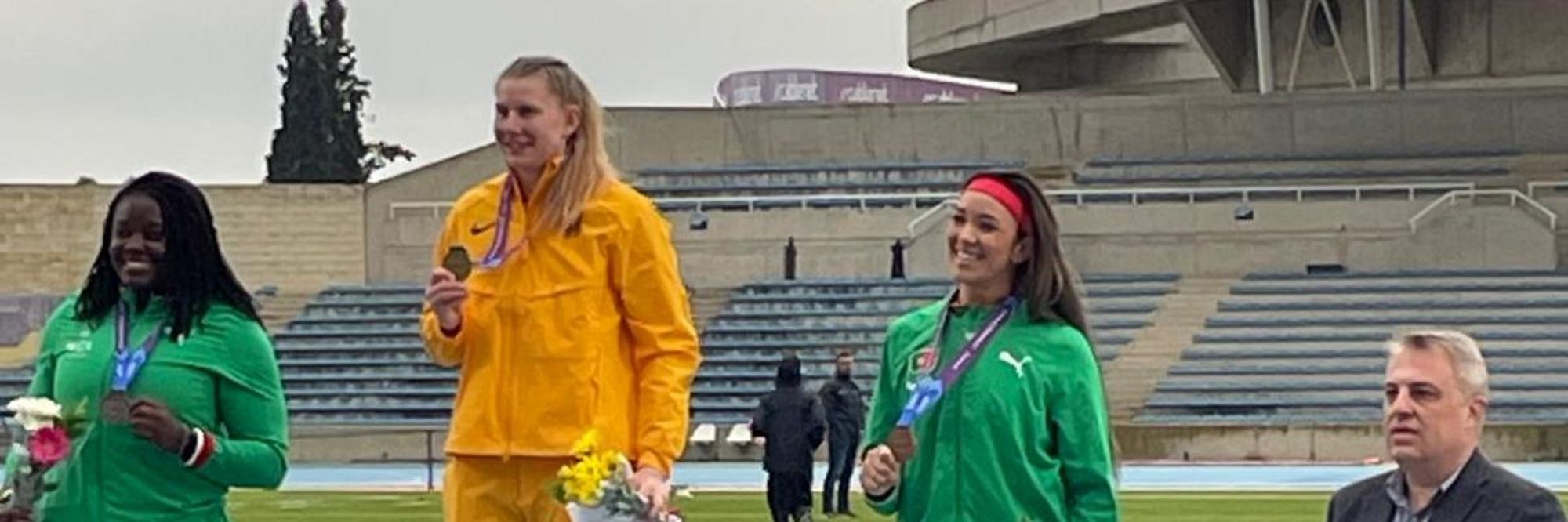 Auch Katharina Maisch konnte im Kugelstoßen der Frauen über Gold jubeln. Nach Rang zwei im vergangenen Jahr stieß sie die Kugel, unter schwierigsten Bedingungen, auf gute 18,32m und siegte damit souverän. Somit hatte sie großen Anteil am Mannschaftssieg der deutschen Frauen. Schon kommendes Wochenende geht es für die 28-jährige mit den Hallen-Weltmeisterschaften in Torun/POL weiter. Hierfür war Nikosia noch einmal ein erfolgreicher Test.